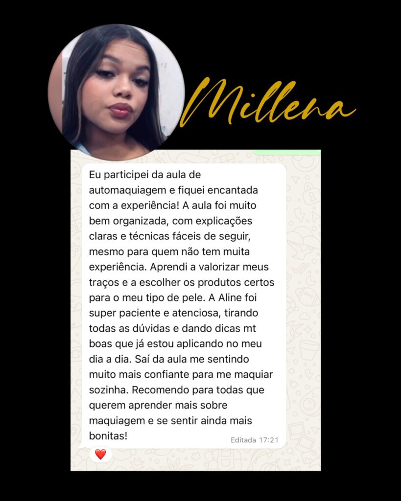 Minha dedicação e talento foram reconhecidos ao longo dos anos, algo que me inspira a continuar inspirando e capacitando mulheres, mostrando que a maquiagem não é apenas um ato de embelezar, mas uma ferramenta poderosa de expressão e autoconhecimento.